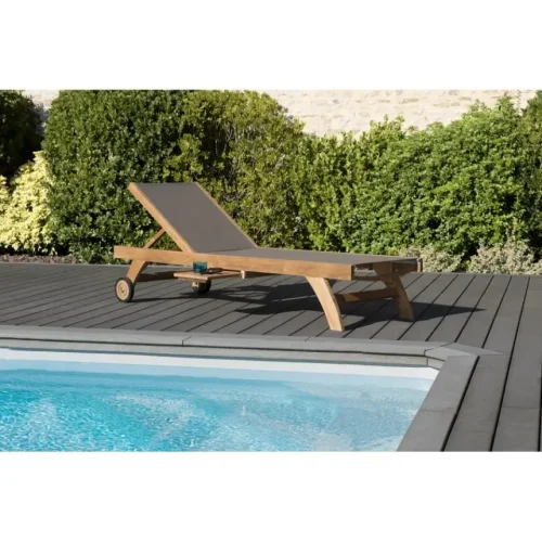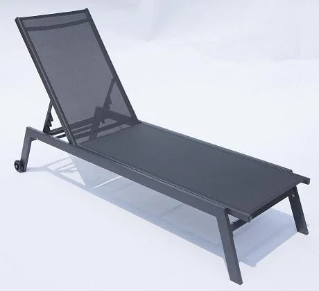 Outdoor Sun Lounger Metal Textliene Swimming Pool Beach Lounger With Wheels
