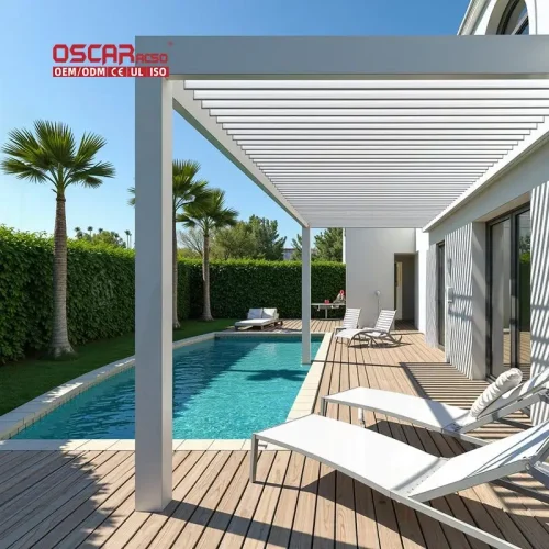 Outdoor Smart Motorized Waterproof Blinds Aluminium Shade Garden Pavilion Bioclimatic Louver Electric Roof Patio Deck Pergola