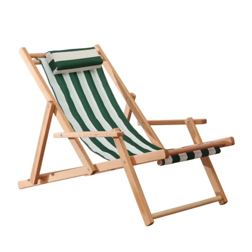 Outdoor Solid Beech Wooden Beach Chair Wood Folding Deck Chair Wooden Lounge Chairs Can Adjust Height