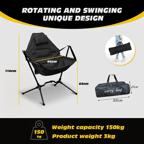 Portable Folding Hammock Camping Chair Swinging Rocking Chair for Adults Lawn Beach Camp With Adjustable Back Support Carry Bag