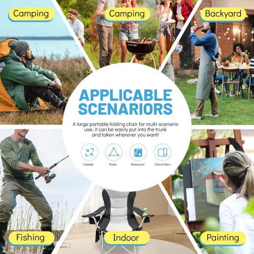 Portable Folding Outdoor Oxford Folding Camping Chairs Beach Fishing Chairs for Park Use with Cooler Bag