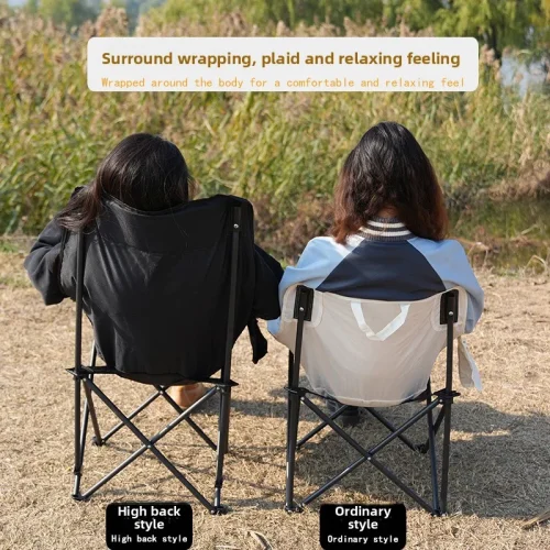 Portable Moon Chair Three-Level Adjustment Oxford Metal Outdoor Camping Picnic Chair Cotton Padding Includes Storage