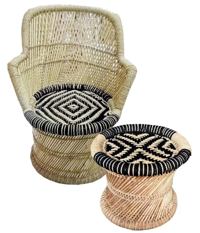 Premium Quality Traditional Indian Eco-Friendly Bamboo Chair Comfortable Handmade Chair With Ottoman
