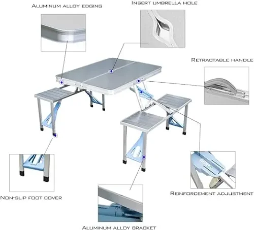 Todo Aluminum Folding Picnic Table with 4 Seats Portable Camping Table with Bench Outdoor Suitcase Table for BBQ Picnic Hiking