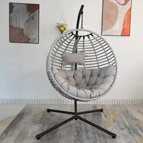 Toparts High Quality Garden Outdoor Rattan Kids Adults Relax Furniture Foldable Swing Chair with Stand
