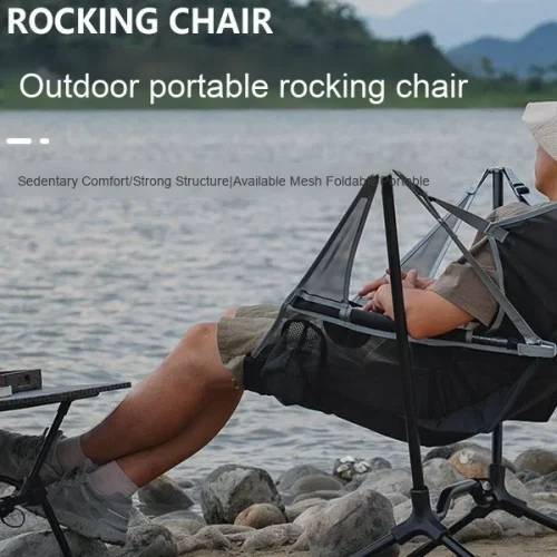 Ultra-Light Portable New Foldable Rocking Chair Solid Modern Integrated Moon Chair Aluminum Alloy for Indoor Outdoor Use Camping