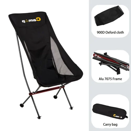 Ultra-Lightweight Outdoor Folding Chair, Portable 600D Oxford Camping Chair, High Back Fishing Chairs for Beach