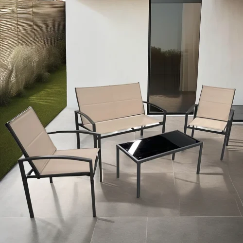 Uplion KD Modern 4pcs Outdoor Patio Furniture Set Garden Sling Coffee Sofa with Metal Table for Dining Park Hall Workshop