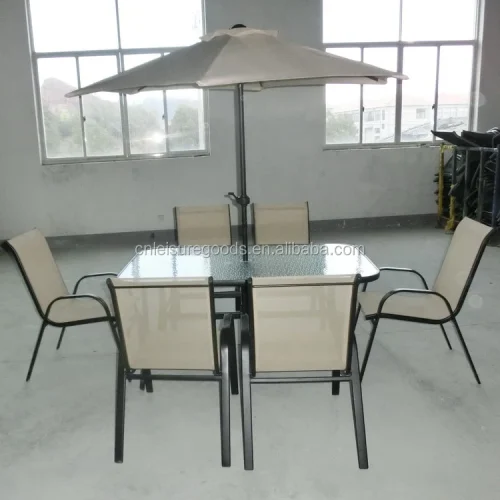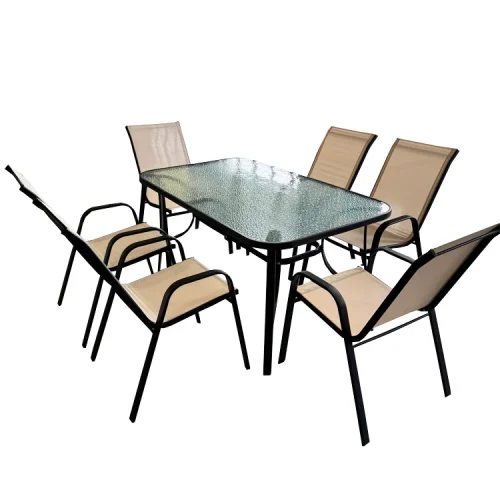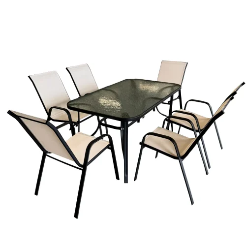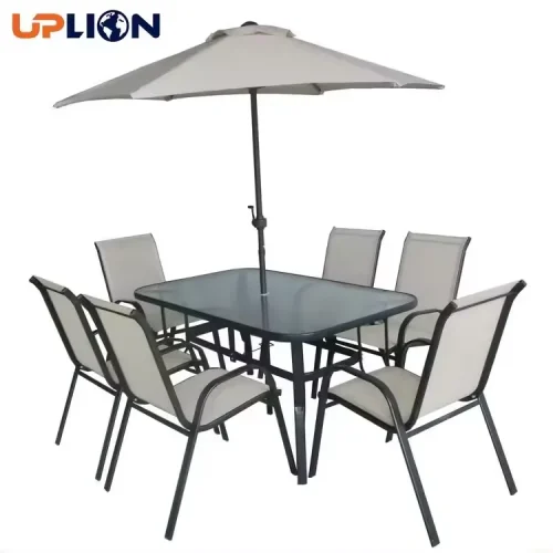 Uplion Garden Table 6pcs Chair Set Ridge Modern Outdoor Furniture Patio Folding Dining Table 2*1 Fabric Chair Set