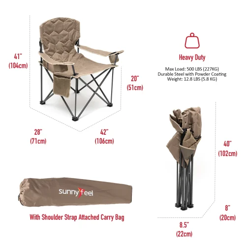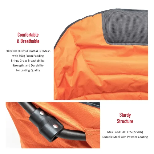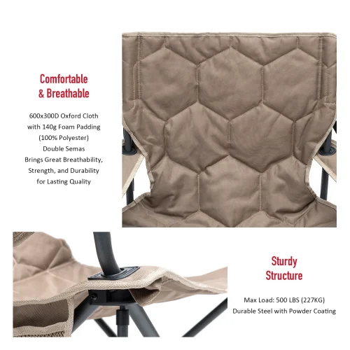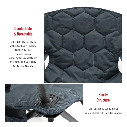 US Warehouse Padded Oversized 600D PVC Portable Folding Camping Chair With Side Pocket