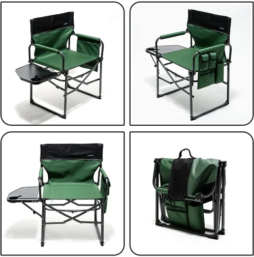 US Warehouse Outdoor Portable Compact Folding Director Camping Chair with Side Table