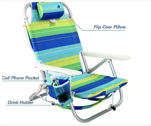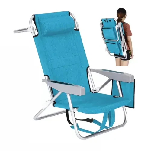 5 Positions Lay Flat Backpack Multi-style Lightweight Portable with Pillow Camping Metal Folding Aluminium Beach Chair