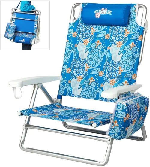 5 Position Adjustable Reclining Lightweight Aluminum Backpack Portable Foldable Beach Chairs Camping Chairs with Cooler Bag