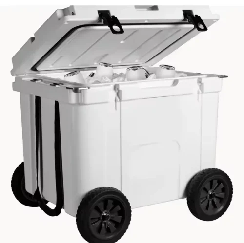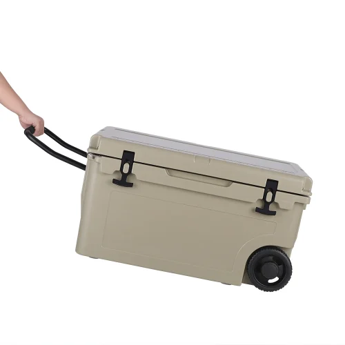 55L Insulated PE Rotomolding Portable for Outdoor Activities Fishing Beach Cooler Box with Wheels