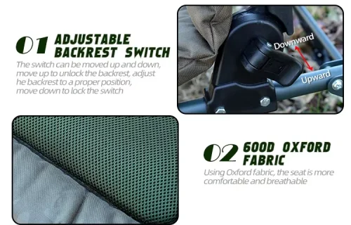 Adjustable Backrest Metal Recliner Feeder Multifunctional Camping and Fishing Chair