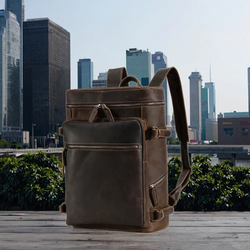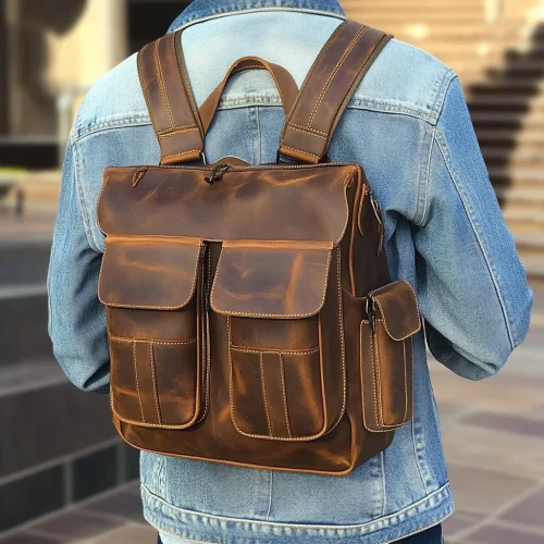 Travel Large Back Pack Roll up Backpack Men Hiking Book Bag Full Grain Leather Laptop Backpack