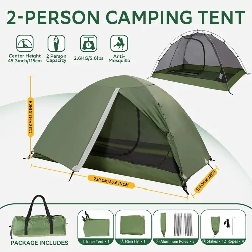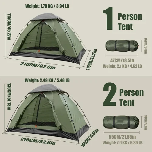 1/2 Person Backpacking Tent – Ultralight, Waterproof, Easy Setup. Compact 3-Season Tent for Camping and Hiking.