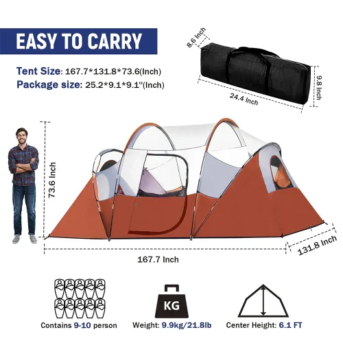 10 Person Camping Tent Portable Easy Set up Family Tent for or Hiking, Backpacking, Traveling