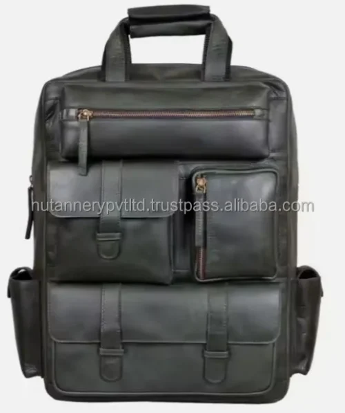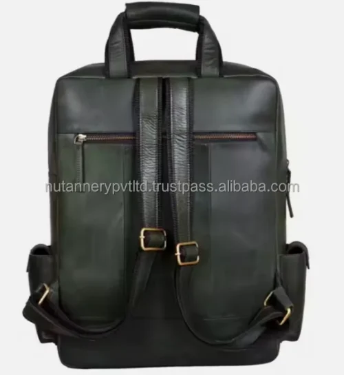 100% Genuine Leather Smart Dark Green Backpack Unisex Portable Multifunction for Travel and Mountaineering Laptop Friendly