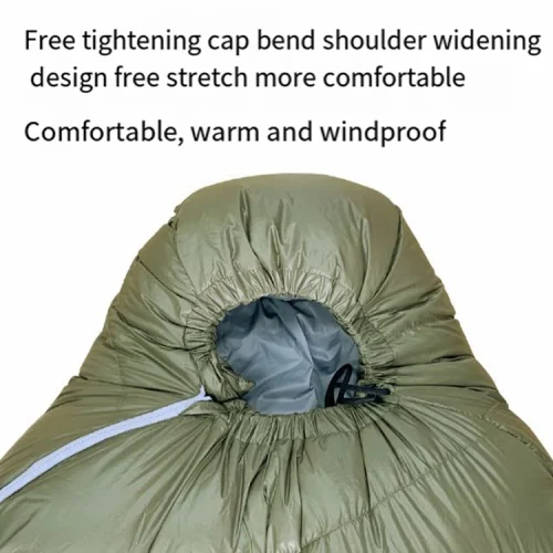 Mummy Style Down Camping Sleeping Bag With Full Collar and Side Baffle