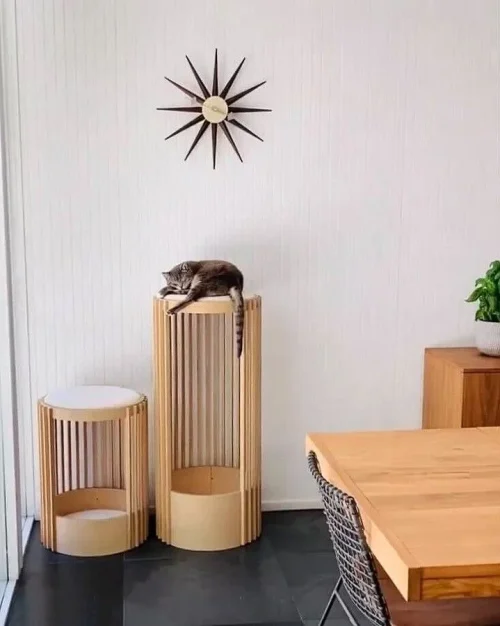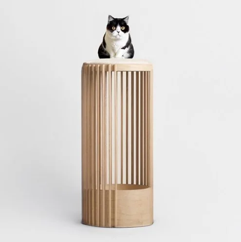 Solid Wood 2-in-1 Cat Litter and Padded Cat Crawler Hand-Polished Modern Oak Design Pet Furniture Accessory