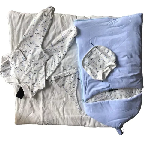 Spring and Autumn New Baby Classic Romper+ Hat +Bib+ Sleeping Bag 4in Set Baby Kids Wrap Quilt 4-Piece