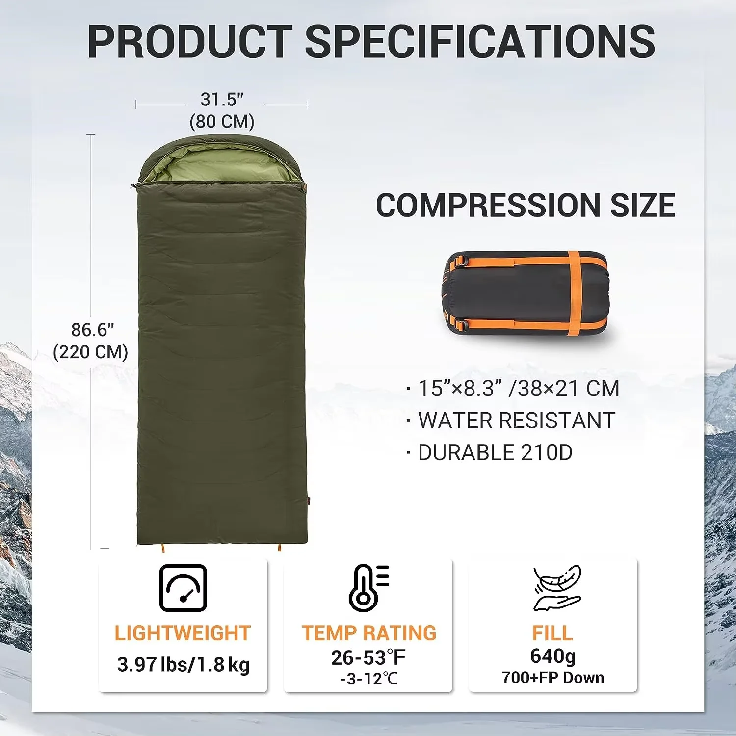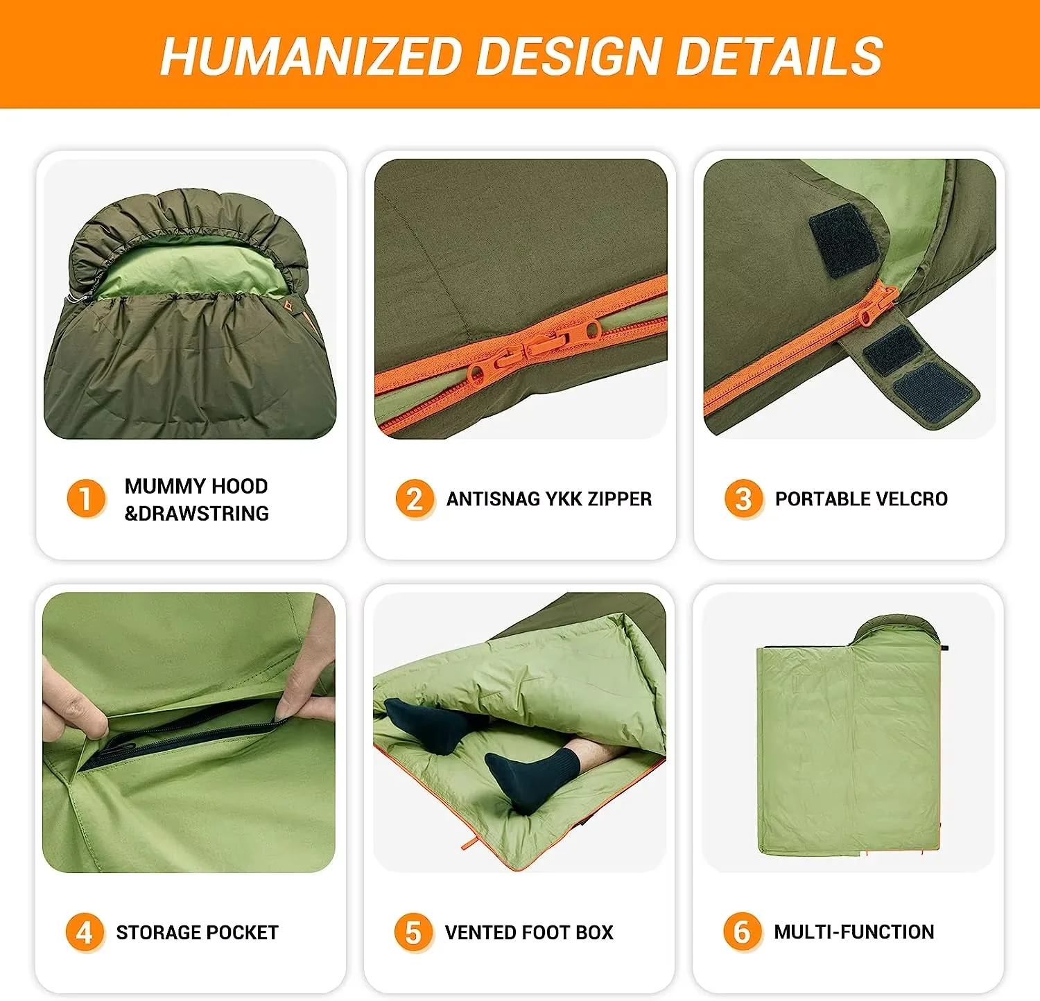 Product Name: 100% Nylon Ripstop Mummy Style Sleeping Bag Light Cotton Waterproof Duck Filling for Cold Weather Camping