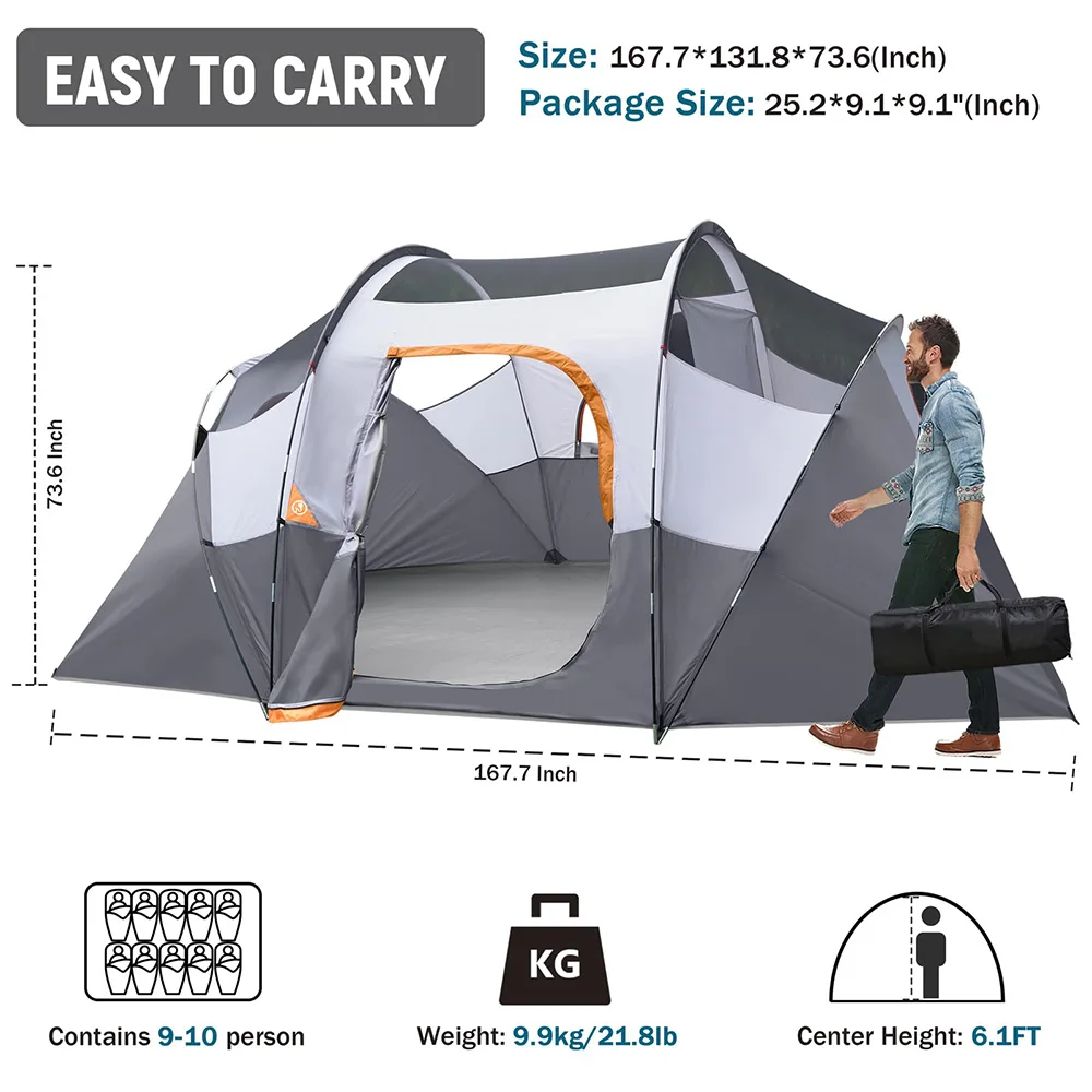 Product Name: 10-Person Camping Tent | Easy Setup Portable Family Dome Tent for Camp, Hiking, Backpacking & Traveling