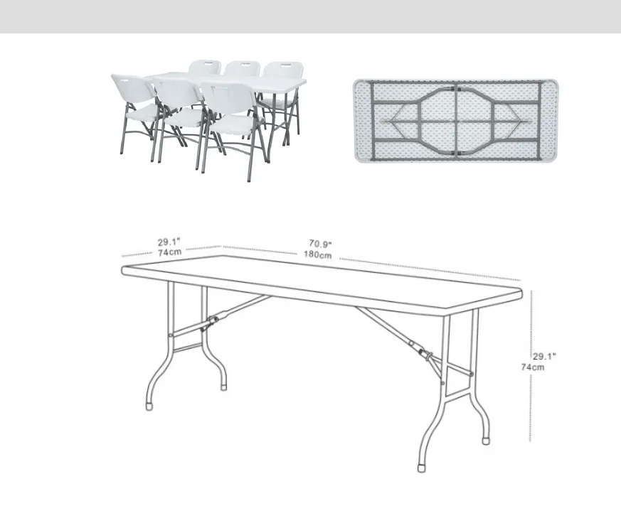 1.8m Durable Camping Outdoor Durable Solid Plastic Banquet Collapsible Table and Chair