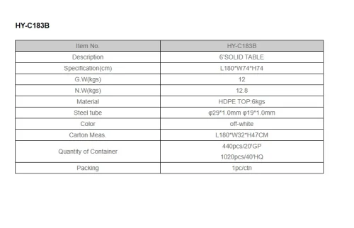Product Name: 1.8m Durable Camping Outdoor Durable Solid Plastic Banquet Collapsible Table and Chair