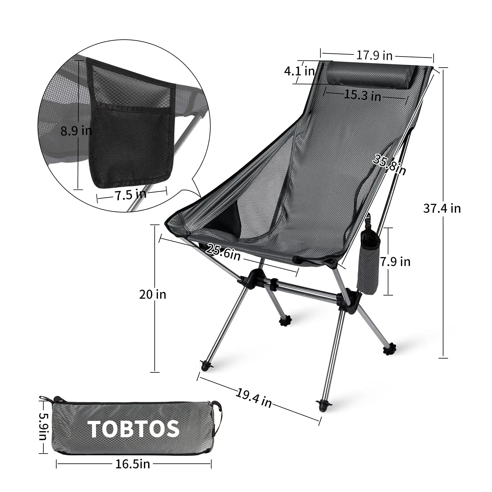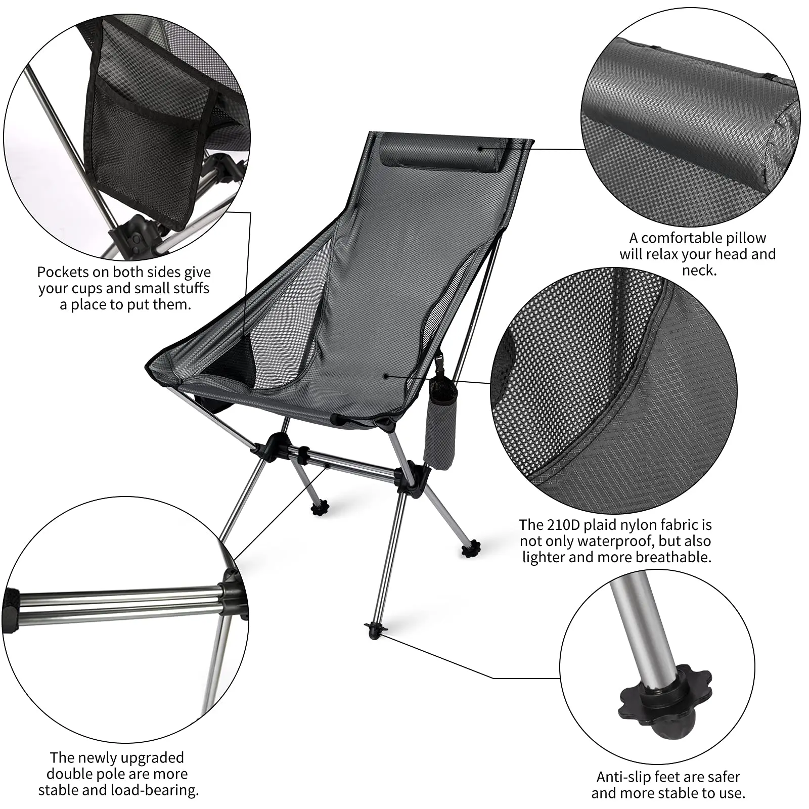 2023 Ultralight Outdoor High Back Portable Folding Camping Chairs for Camping, Beach and Travel with Pocket Carry Bag Co
