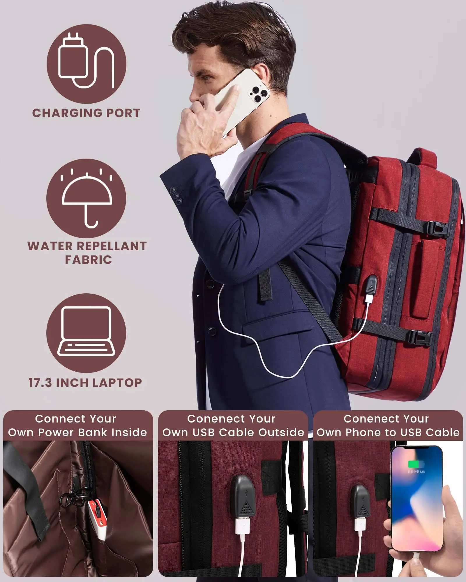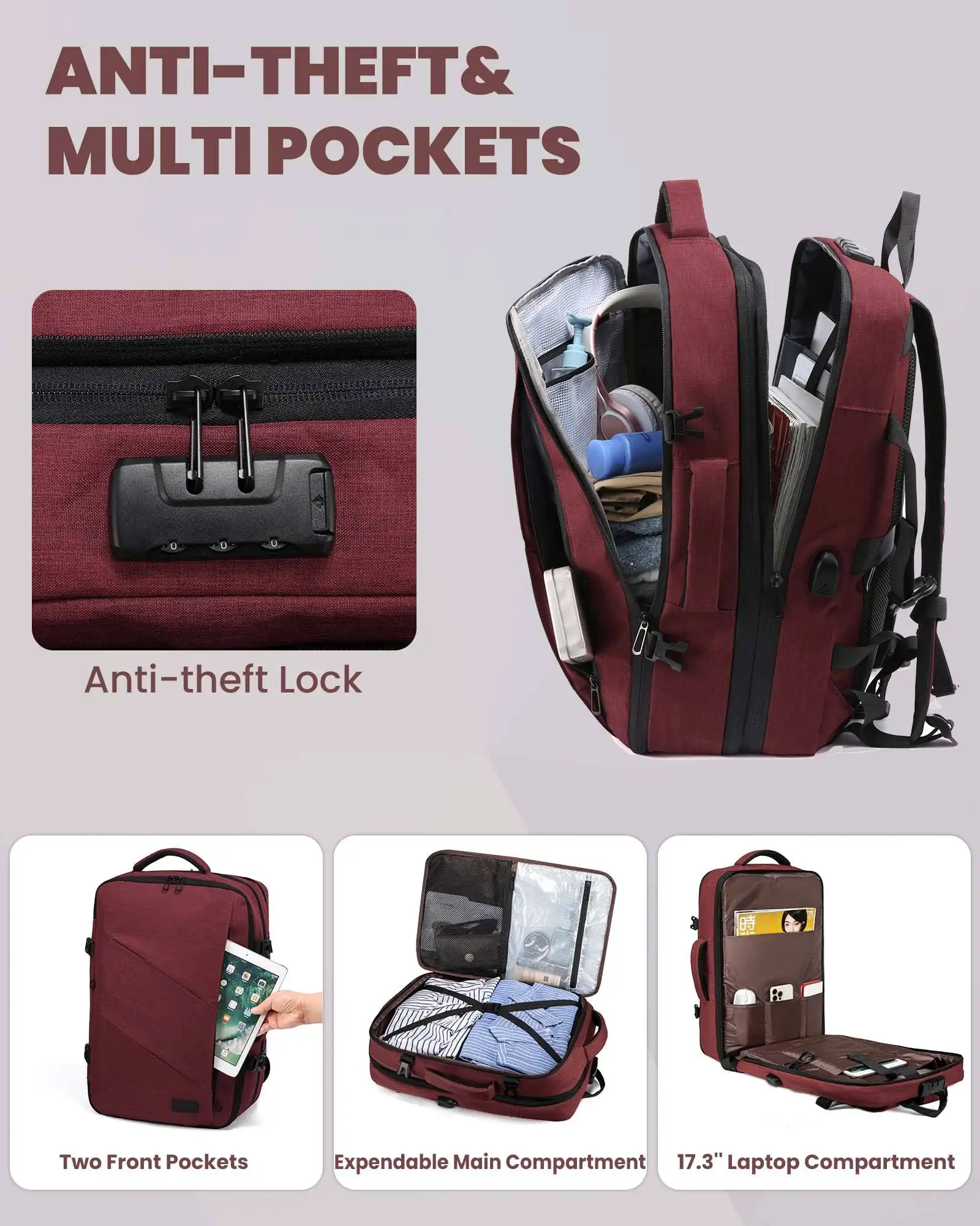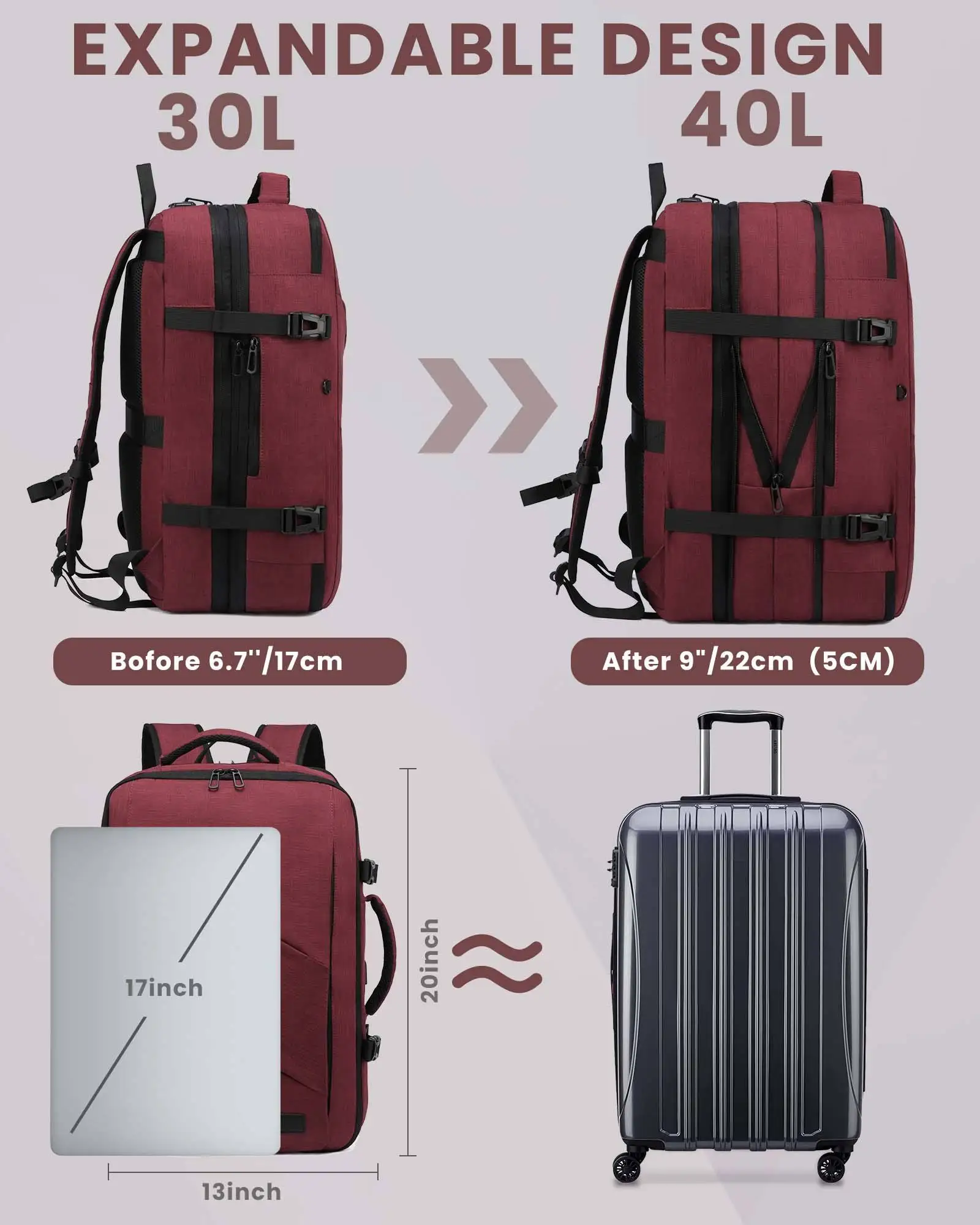 Product Name: 2024 Fashion 4 in 1 Travel Backpack Waterproof Expandable 40L Airline Approved Bags Large Laptop Travel Backpack with USB Unisex