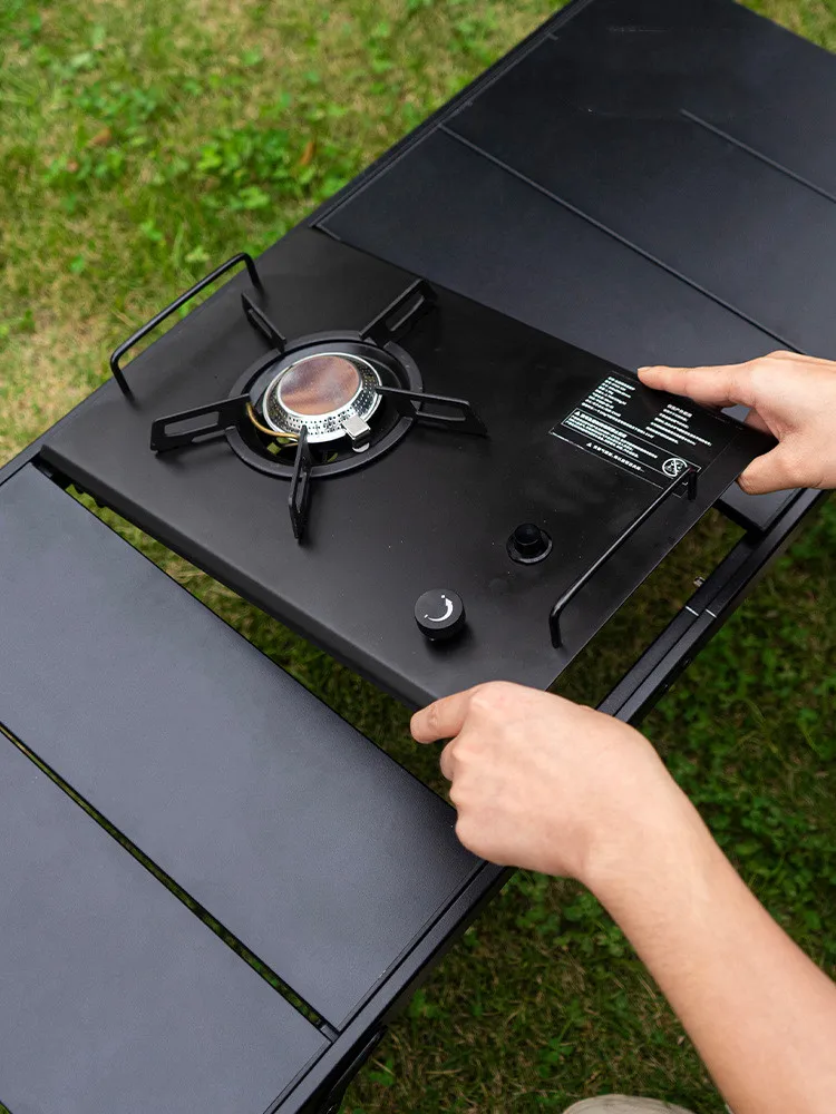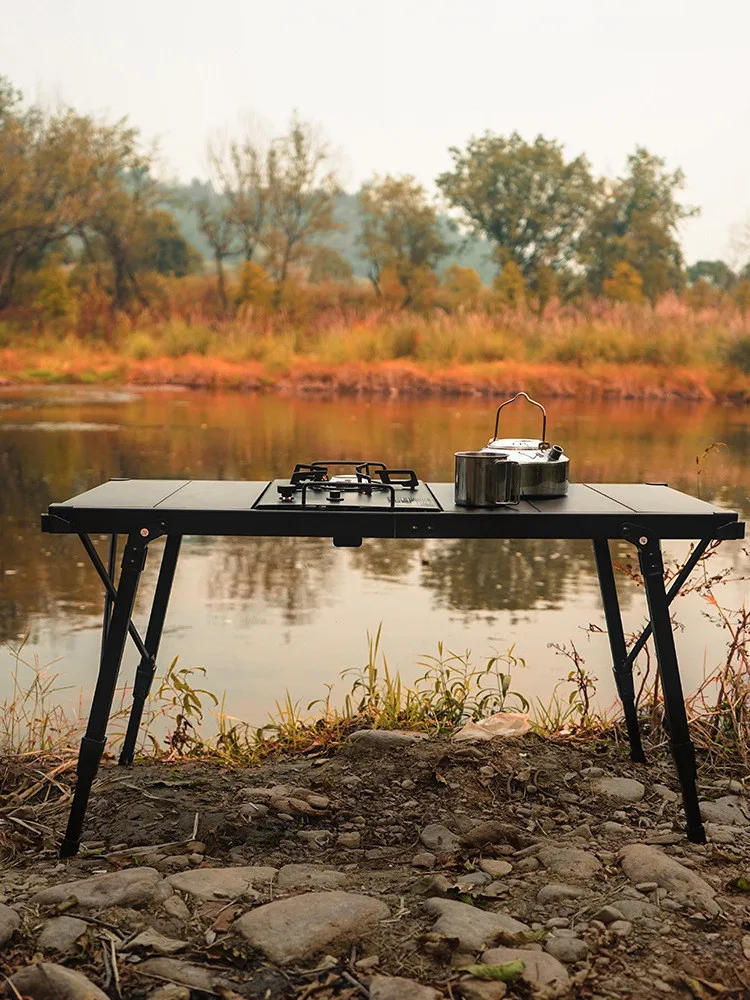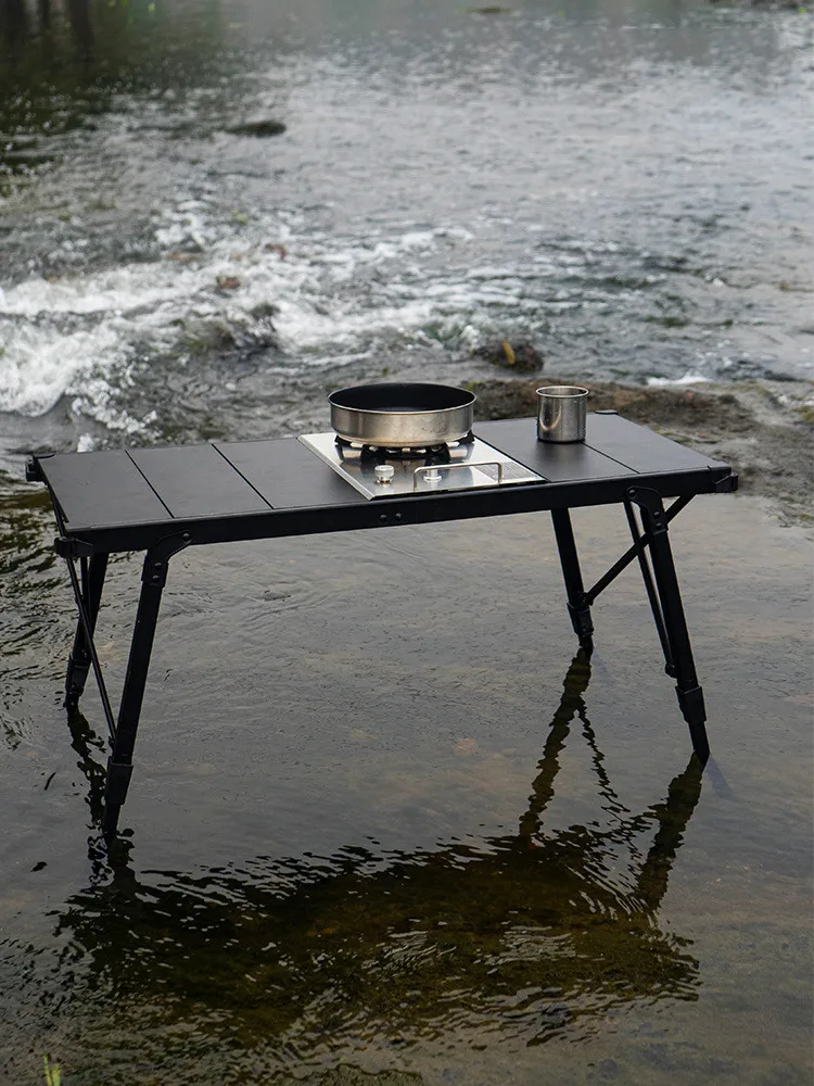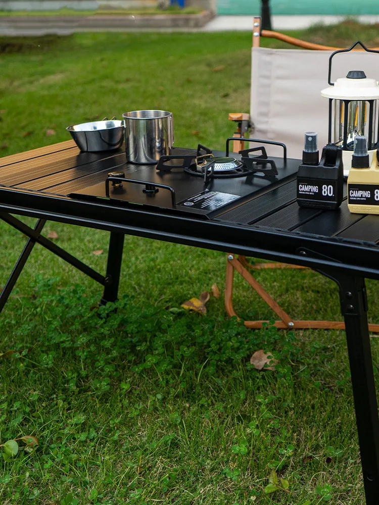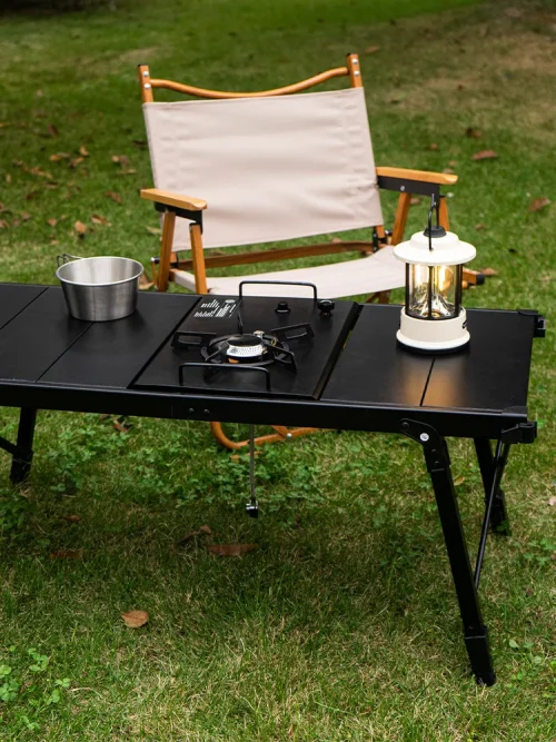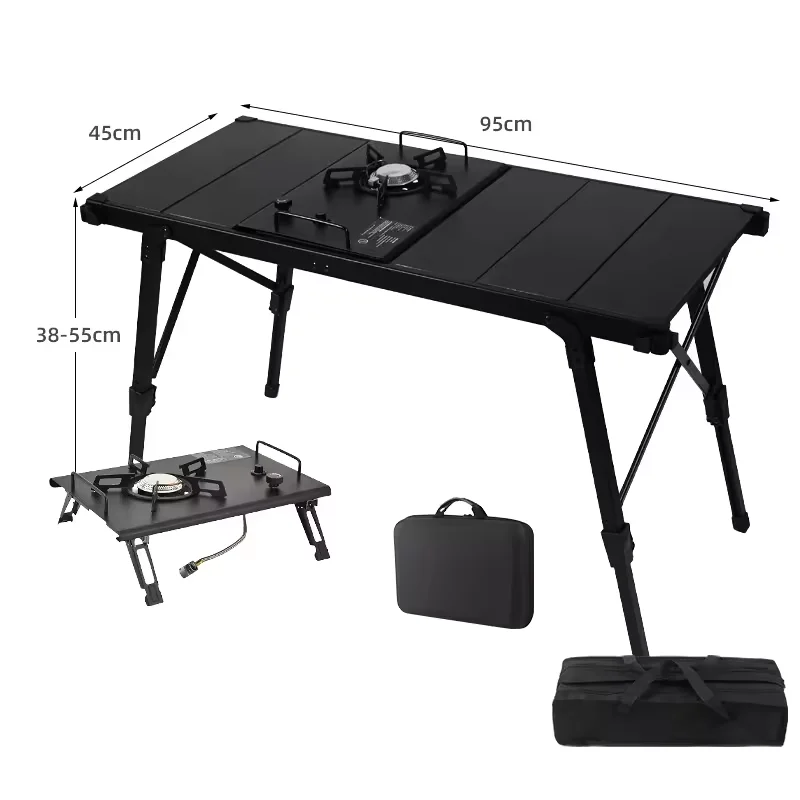 Product Name: 2024 New Design Outdoor Portable Foldable Picnic Table Black Aluminum Collapsible Cooking Camping Table Chair Set