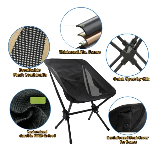 Product Name: 2024 New Outdoor Lightweight Portable Camping Chair Folding Aluminum Camping Chair Foldable Fishing Beach Moon Chair