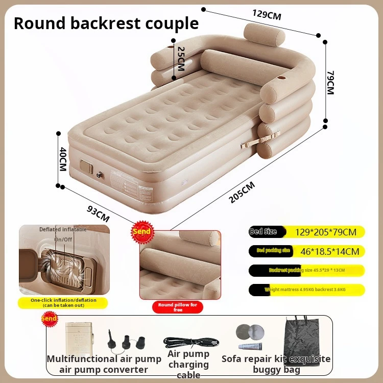 2025 NEW YX Round Beige Backrest Flocking Inflatable Bed Thickened Lounge Chair Tent Sleeping Mat Home air Cushion