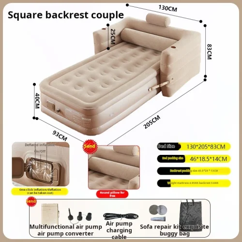 Product Name: 2025 NEW YX Square Cream-colored Backrest Flocking Inflatable Bed Thickened Lounge Chair Tent Sleeping Mat Home air Cushion