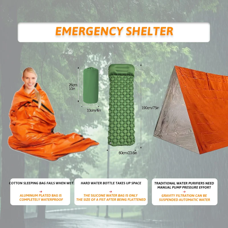 Product Name: 2-3 Person Professional Outdoor Survival Gear Kit 72-Hour Emergency Travel Hiking Backpacking Sleeping Bag Tent Camping