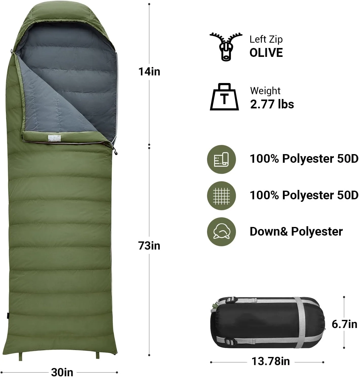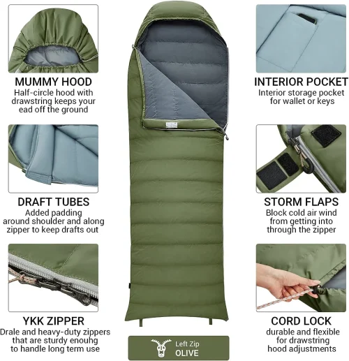 Product Name: 400g Waterproof Cold Weather Sleeping Bag Camping Hiking Goose Down Mummy Sleeping Bag