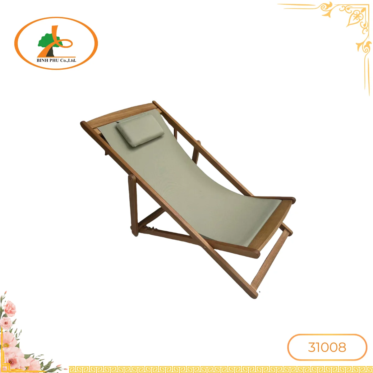 Product Name: Adjustable Folding Sun Lounger Chair | Solid Wood Frame & Water Resistant Fabric | Outdoor Beach Patio use | Vietnam Supplier