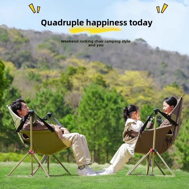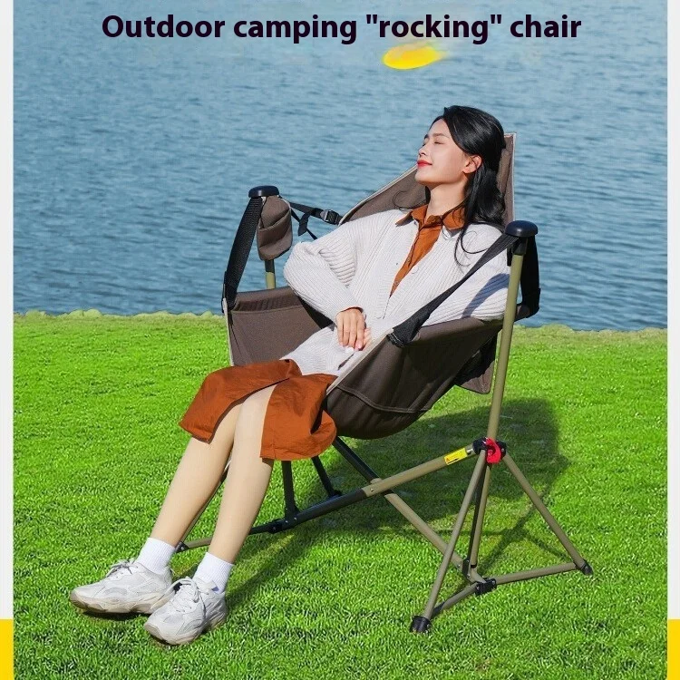 Adjustable Portable Metal Rocking Chair Modern Design Fishing Chair for Outdoor Beach Camping Patio Leisure Lazy Recliner Use