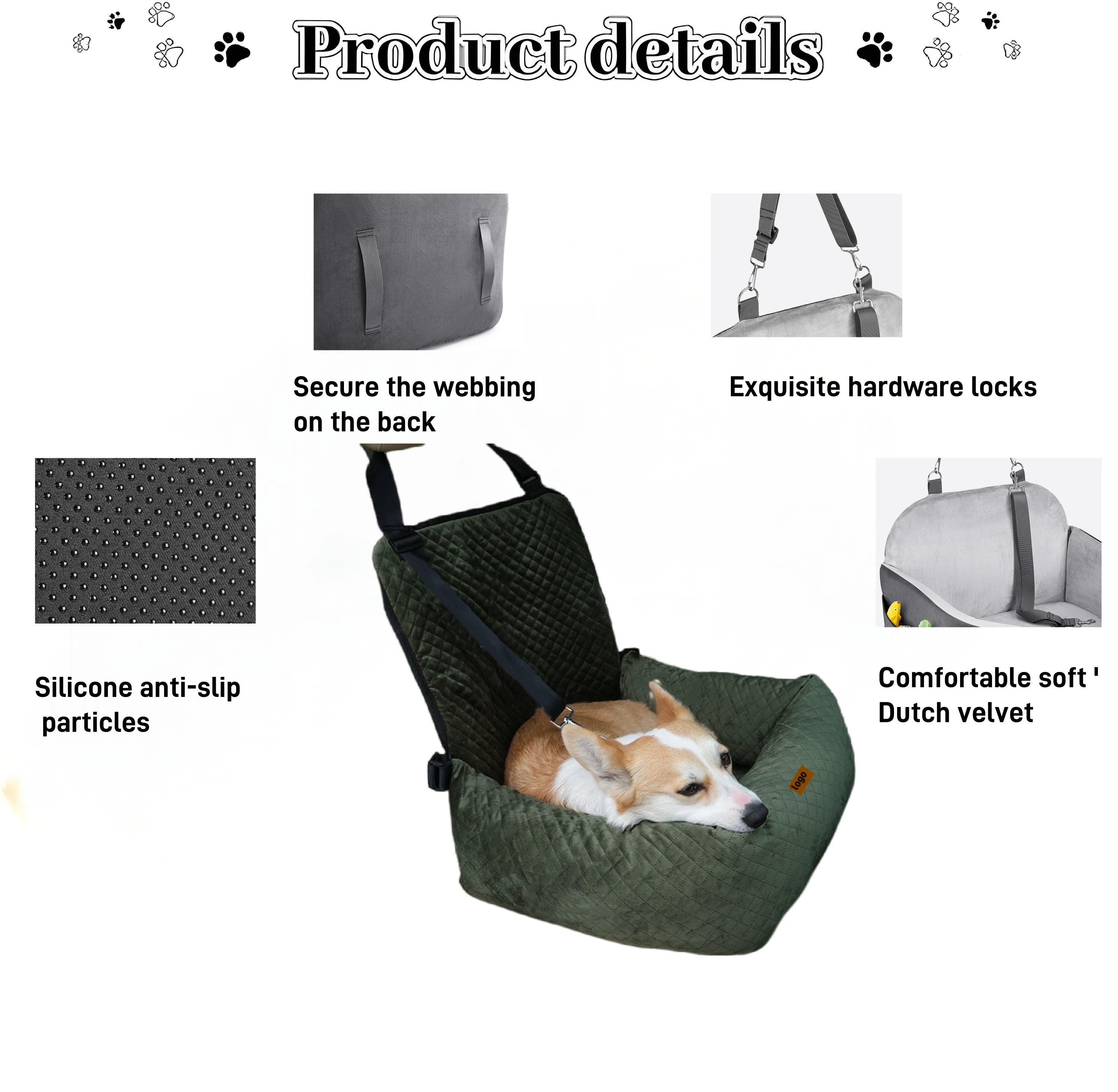 Product Name: Adjustable Small Dog Car Seat Solid Pattern Pet Booster Travel Bed with Safety Belt and Leash Washable for Cats and Dogs