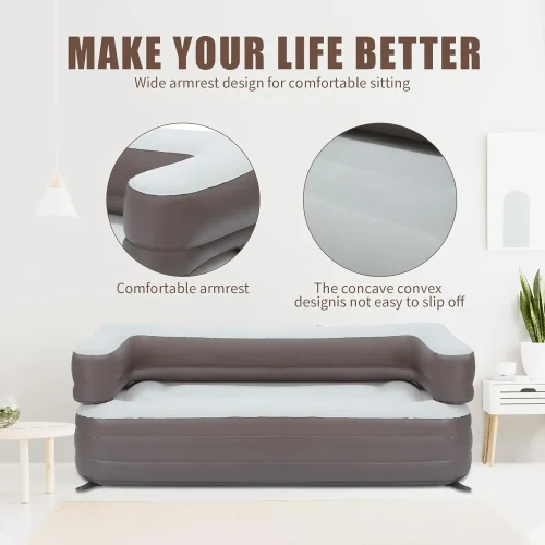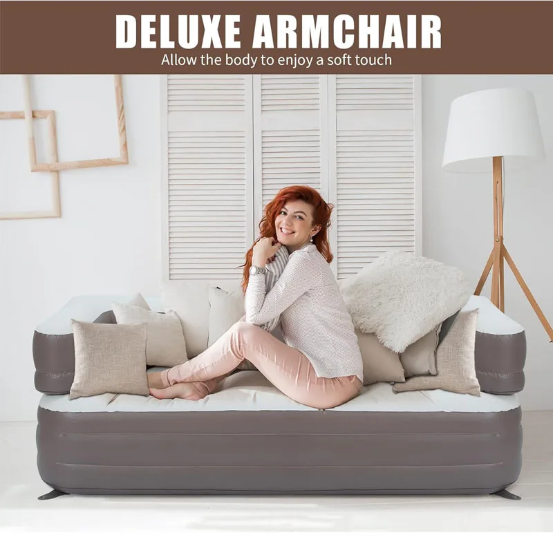 Product Name: air Sofa PVC Flocked Mattress Bed Auto Inflatable Couch Lounger Air Sofa Chair Bed Inflatable Sofa Bed with Armrest
