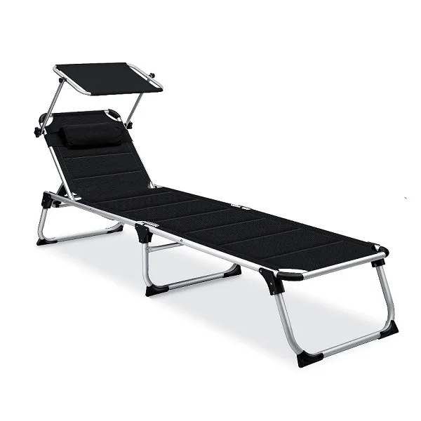 Aluminum Frame Foam Padded Sun Lounge Foldable Day Bed Camping Bed With Sun Shade