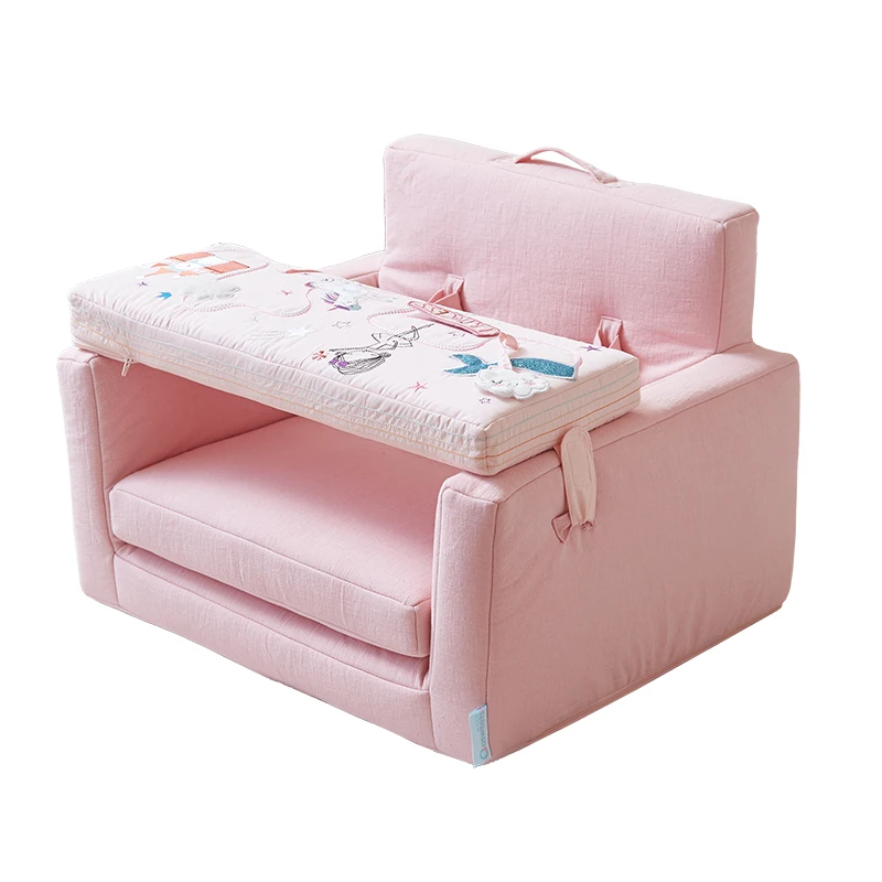 .Pink Playard for Baby Bed Travel Cot Cheap Kid Metal Furniture with Wheels Second Layer Child Playpen Bed Durable Polyester Bed