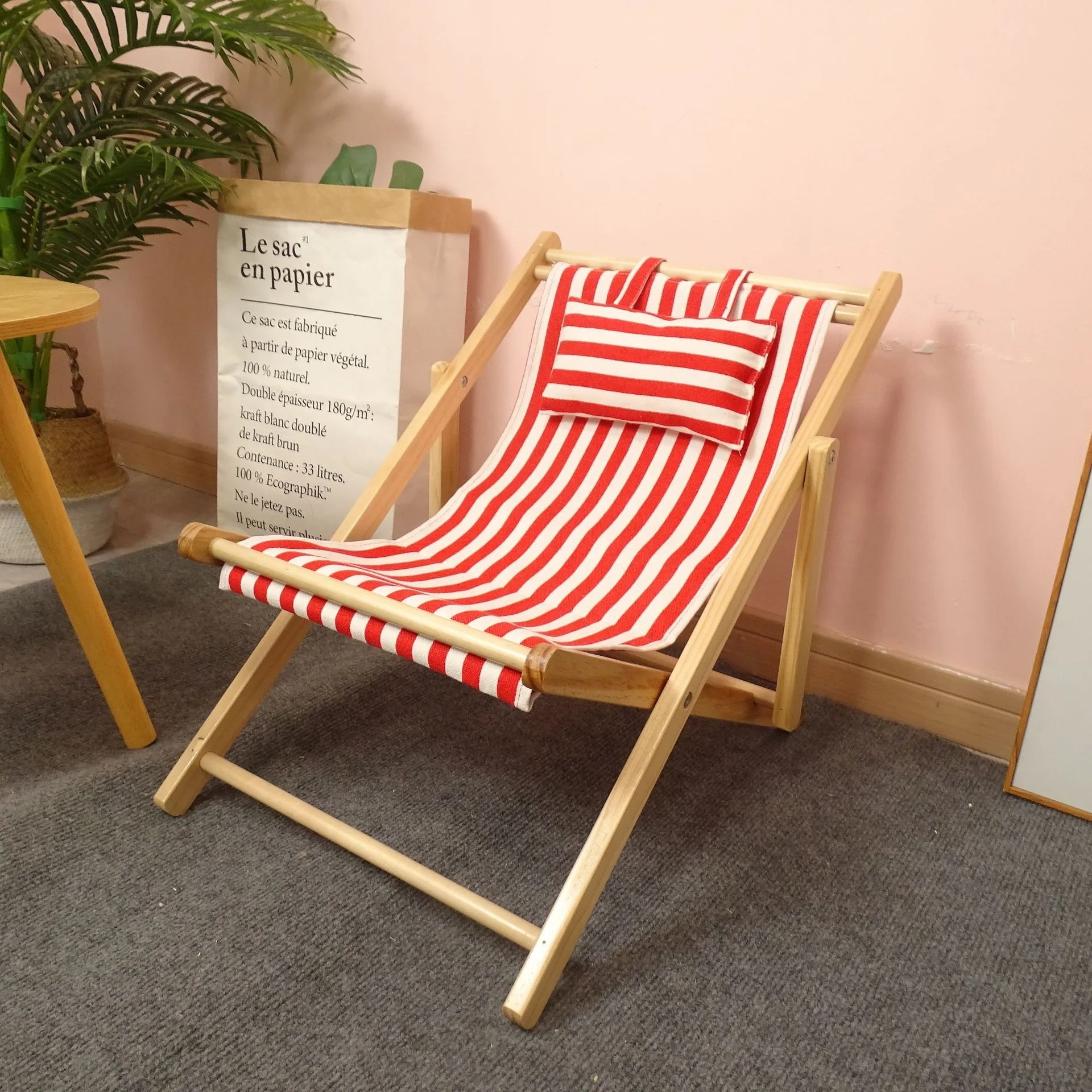 Product Name: Black and White Striped Folding Chairs Beach Camping Portable Adjustable Outdoor Solid Wood Chairs