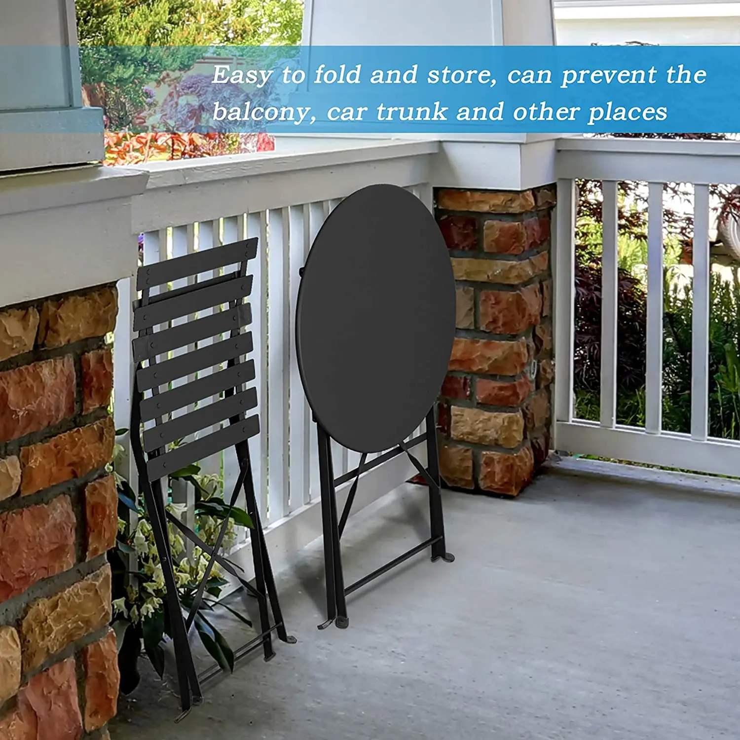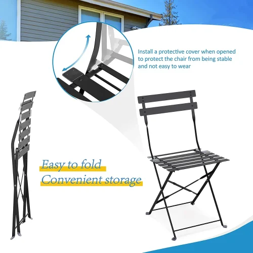 Black Bistro Set Foldable Patio Dining Camping Table and Chairs Metal Folding Outdoor Patio Furniture Sets