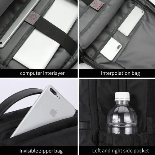 Product Name: Black Camo Large Capacity Waterproof Unisex Laptop Basketball Bag Mens Travel Pack USB Zipper Softback Anti-Theft Nylon Lining