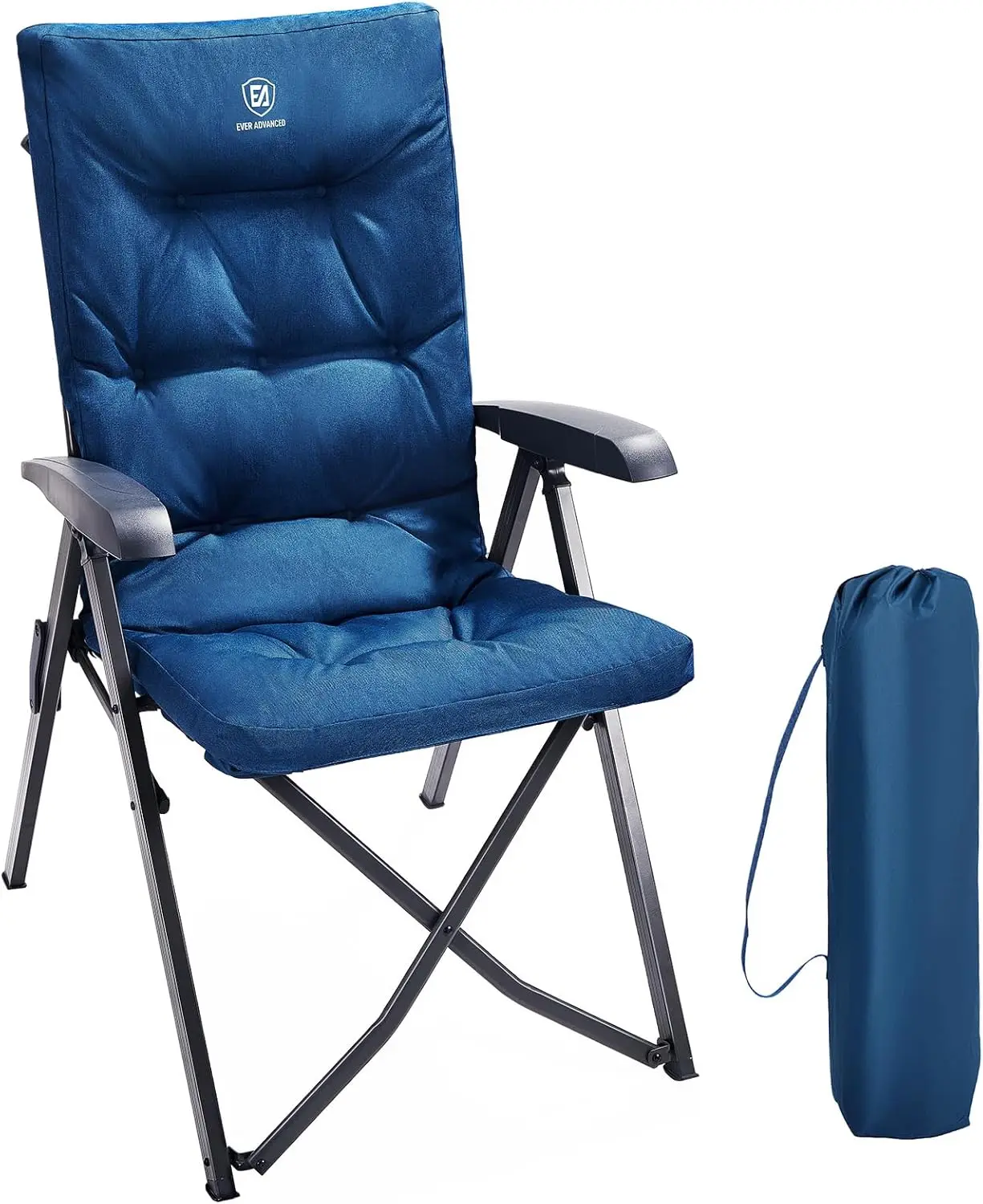 Product Name: Blue 4-Position Adjustable Recliner Camping Chair High Back Support 300lbs Weight Capacity Portable Adults Padded Folding Chair