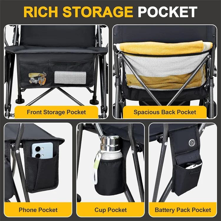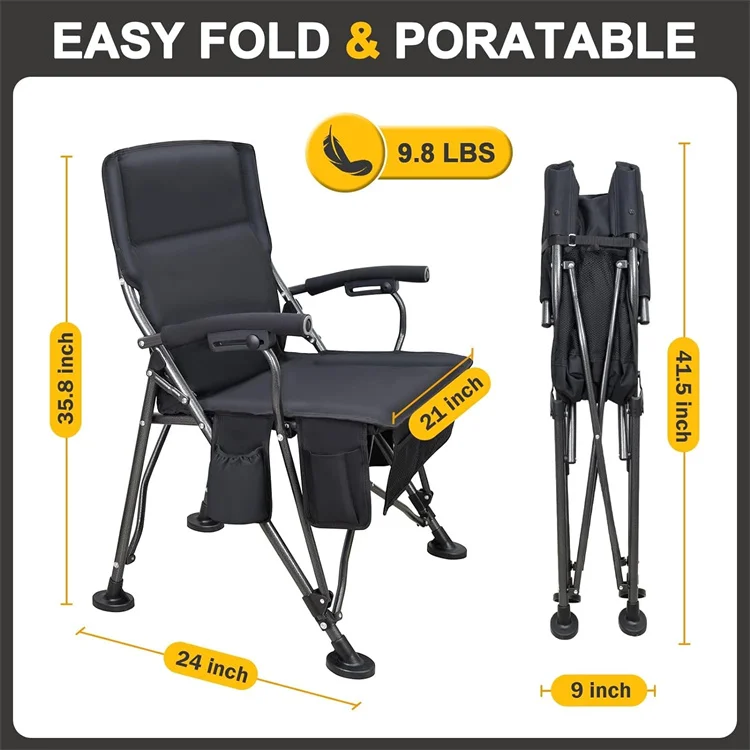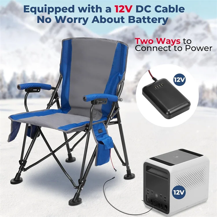 Blue Lightweight Metal Steel Portable Fishing Folding Camping for Travel Heated Padded Chair