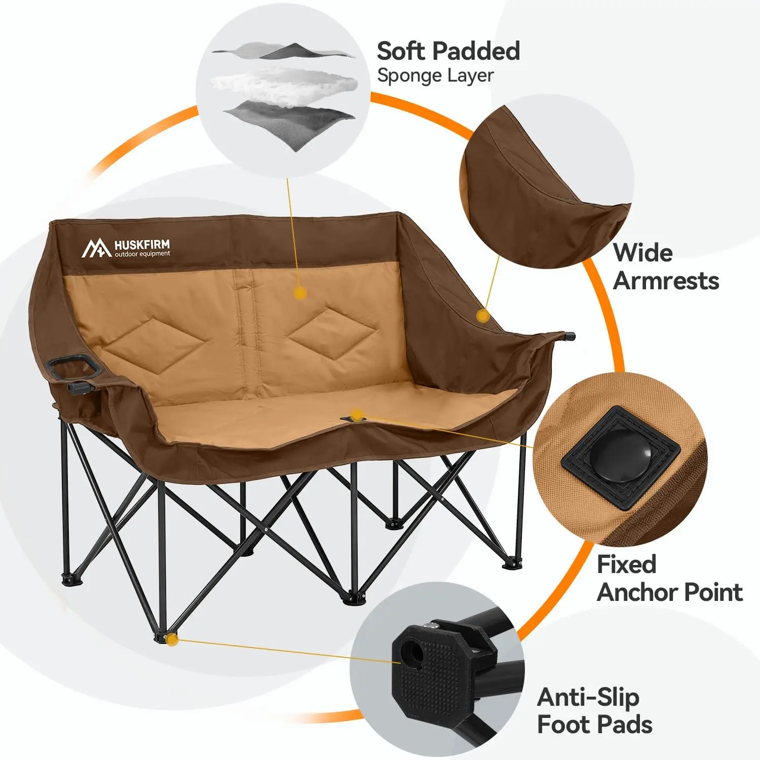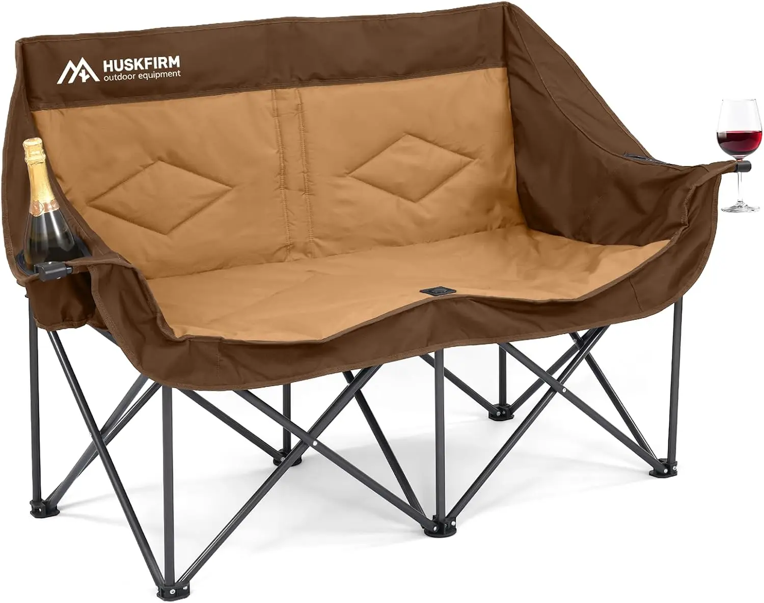 Product Name: Brown Heavy-Duty Outdoor Camping Loveseat Chair for Adults Double Oversized Portable Folding Chair with Cup Holders Lawn Camp